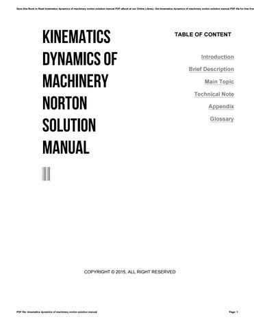 MIU - Reading Online KINEMATICS AND DYNAMICS OF MACHINERY NORTON SOLUTION MANUAL Kindle Editon Gutenberg